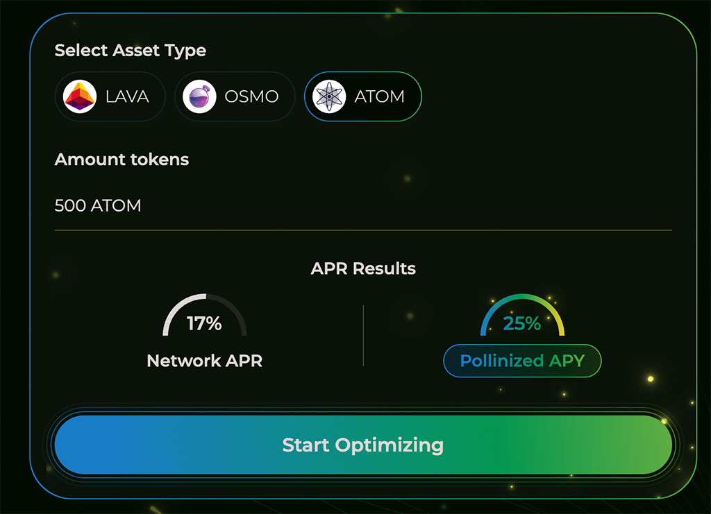 Explore Polli’s above-market returns using the website’s staking calculator. To optimize your holdings, click “Start optimizing” to begin the staking optimization process